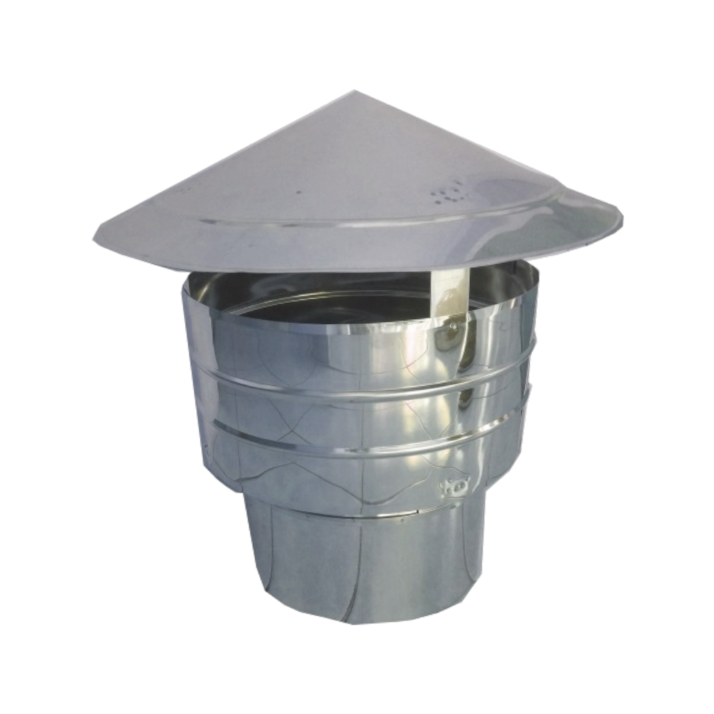 Ανοξείδωτο Αντιανεμικό Καπέλο Θύελλης σε διαμέτρους από Φ80 έως Φ350 (σχήμα καπέλο κινέζος) για χρήση σε σόμπες, τζάκια & λέβητες.
