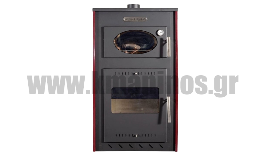 Σόμπα ξύλου με φούρνο για σύνδεση σε σώματα καλοριφέρ ελληνικής κατασκευής (Alfatherm).