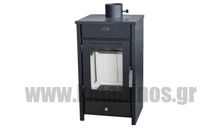 Ενεργειακή σόμπα ξύλου από ατσάλι με εσωτερική επένδυση πυρότουβλο.
