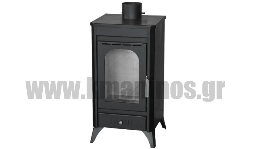Σόμπα ξύλου από ατσάλι επενδυμένη εσωτερικά με πυρότουβλο.
