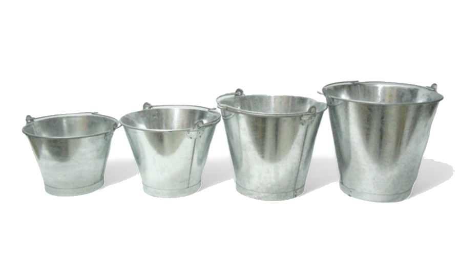 Παραδοσιακοί μεταλλικοί κουβάδες από γαλβανιζέ λαμαρίνα με συρμάτινη χειρολαβή σε 4 διαφορετικά μεγέθη.