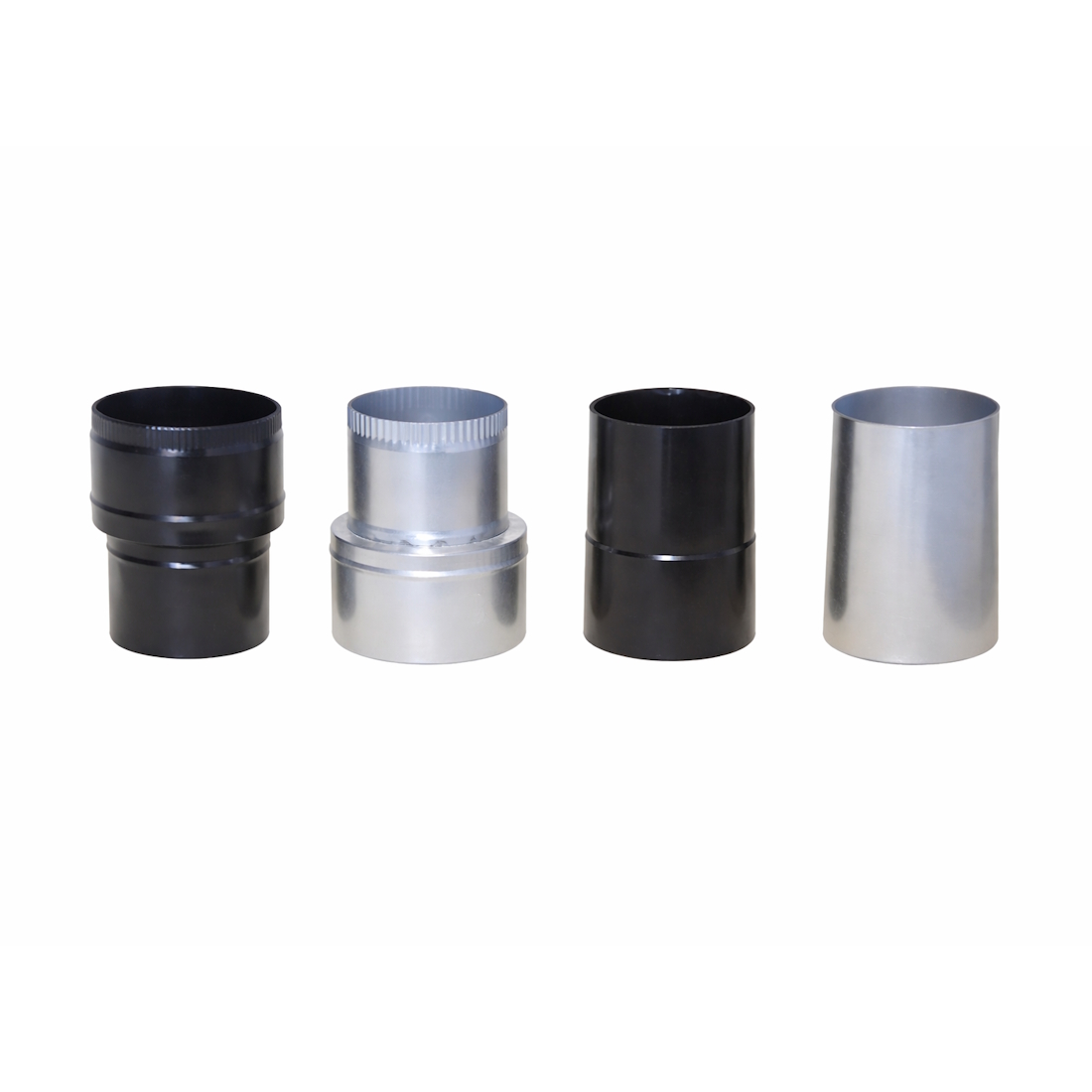 Συστολικά εξαρτήματα διαφόρων διαμέτρων για καμινάδες σομπών σε ποιότητα ινοξ, εμαγιέ καφέ ή μαύρο & γαλβανιζέ.