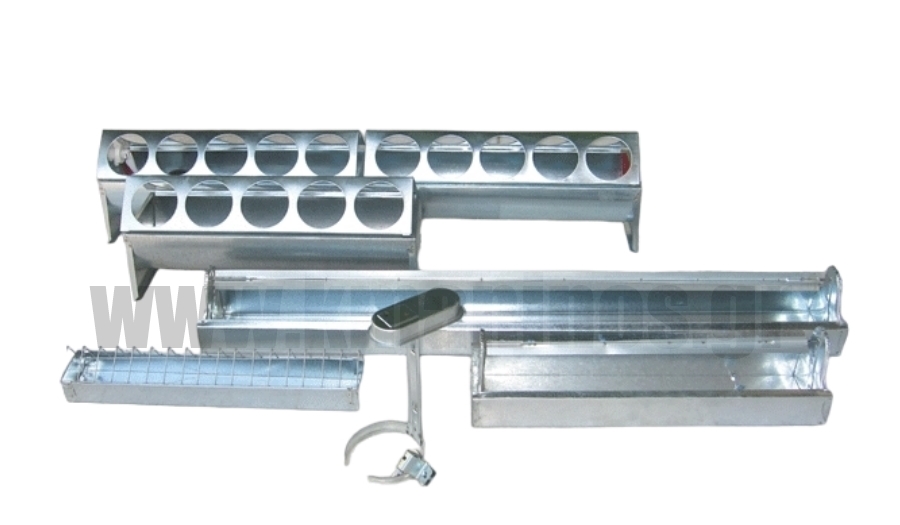Διάφορες μεταλλικές ταΐστρες από γαλβανισμένη λαμαρίνα.